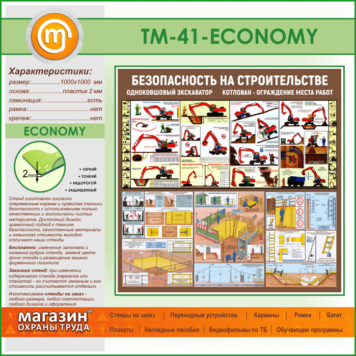 Стенд «Безопасность земляных работ. Экскаватор, котлован» (TM-41-ECONOMY)