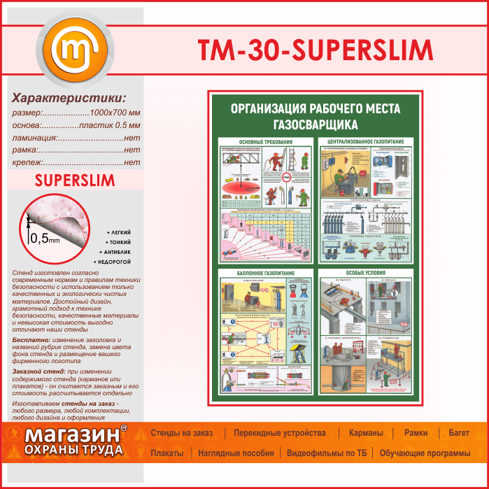 Стенд «Организация рабочего места газосварщика» (TM-30-SUPERSLIM)
