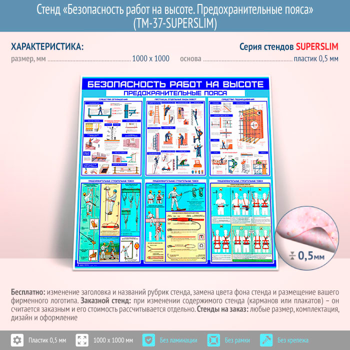 Стенд «Безопасность работ на высоте. Предохранительные пояса» (TM-37-SUPERSLIM)