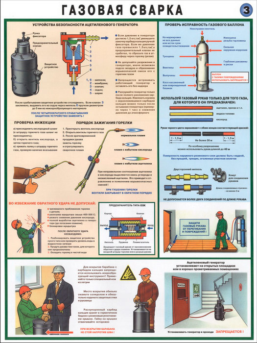 - Плакат «Газовая сварка» – устройства безопасности генератора, исправность газового баллона, техника безопасности