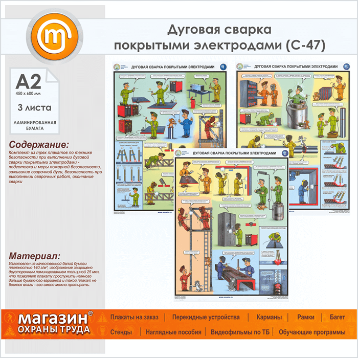 Плакаты «Дуговая сварка покрытыми электродами» (С-47, ламинированная бумага, А2, 3 листа)