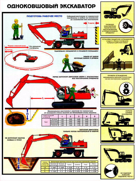 Комплект плакатов «Одноковшовый экскаватор. Безопасность земляных работ» из 4 листов – достойное качество и полезная информация по приемлемой цене