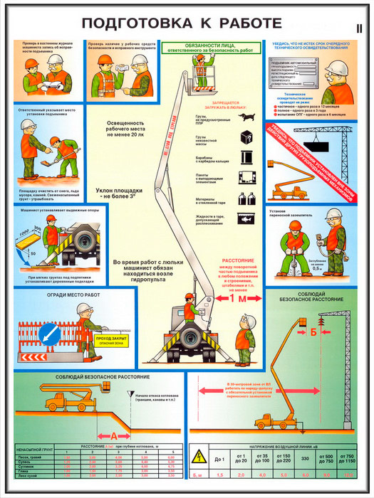 - Плакат «Подготовка к работе» – обязанности ответственного за безопасность работ, подготовка площадки к установке крана