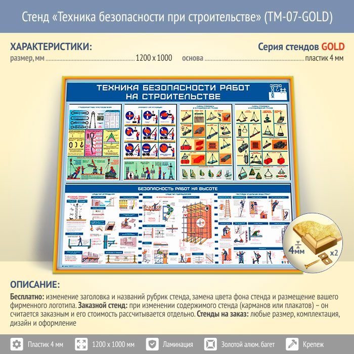 Стенд «Техника безопасности при строительстве» (TM-07-GOLD)