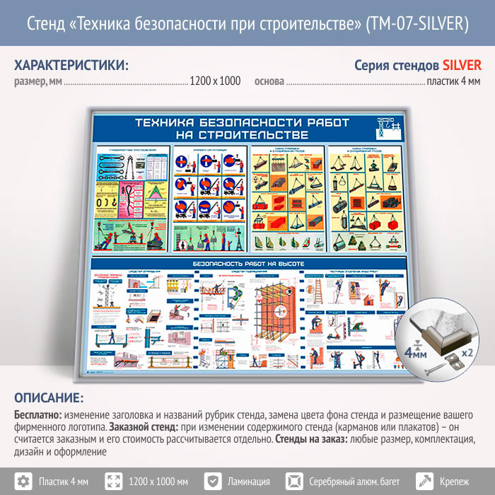 Стенд «Техника безопасности при строительстве» (TM-07-SILVER)