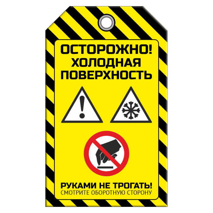 Бирка «ОСТОРОЖНО! ХОЛОДНАЯ ПОВЕРХНОСТЬ» (1 шт., двусторонняя, пластик, 70х115 мм)