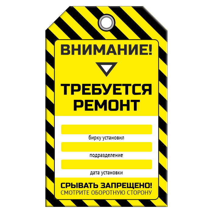 Бирка «ТРЕБУЕТСЯ РЕМОНТ!» (1 шт., двусторонняя, пластик, 70х115 мм)