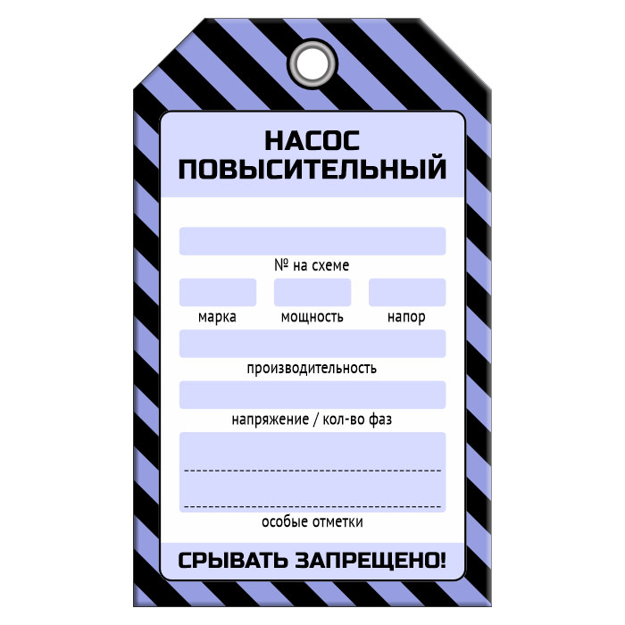 Бирка «НАСОС ПОВЫСИТЕЛЬНЫЙ» (1 шт., односторонняя, пластик, 70х115 мм)