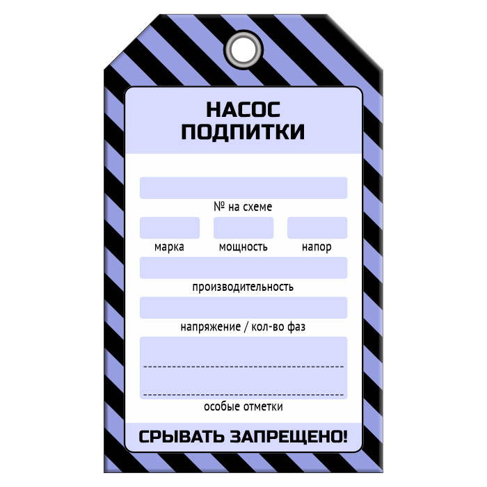 Бирка «НАСОС ПОДПИТКИ» (1 шт., односторонняя, пластик, 70х115 мм)