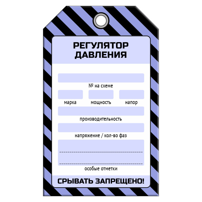 Бирка «РЕГУЛЯТОР ДАВЛЕНИЯ» (1 шт., односторонняя, пластик, 70х115 мм)