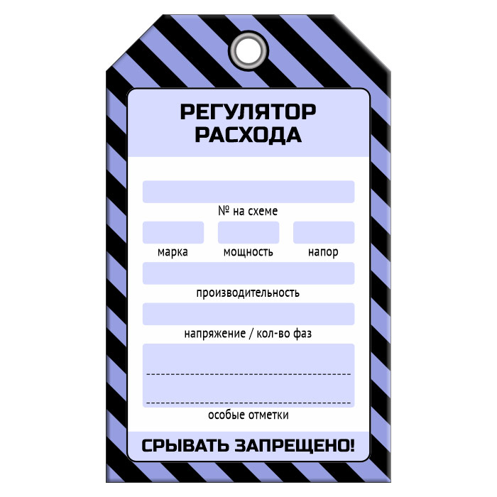 Бирка «РЕГУЛЯТОР РАСХОДА» размером 70х115 мм имеет полноцветную односторонюю печать. Для дополнительной защиты от факторов окружающей среды возможно ламинирование поверхности