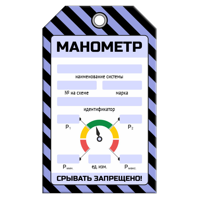 Бирка «МАНОМЕТР» (4 показателя) размером 70х115 мм имеет полноцветную односторонюю печать. Для дополнительной защиты от факторов окружающей среды возможно ламинирование поверхности
