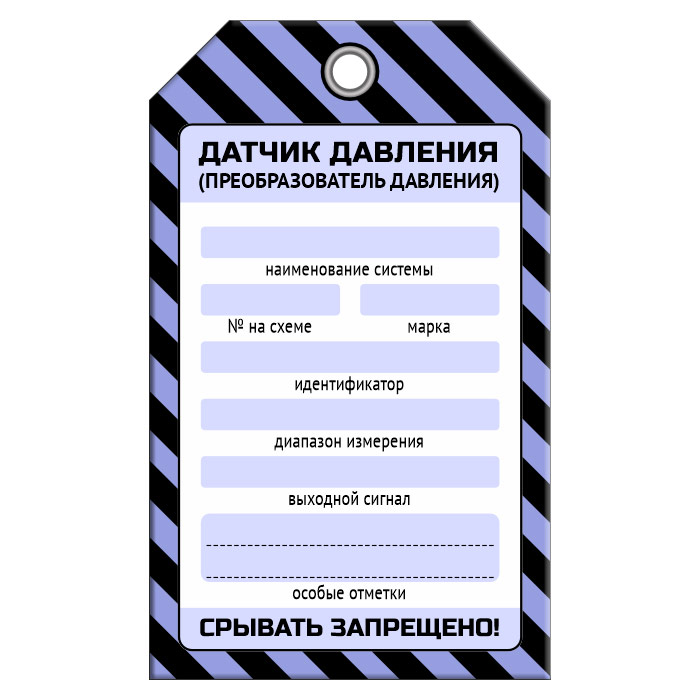 Бирка «ДАТЧИК ДАВЛЕНИЯ» размером 70х115 мм имеет полноцветную односторонюю печать. Для дополнительной защиты от факторов окружающей среды возможно ламинирование поверхности