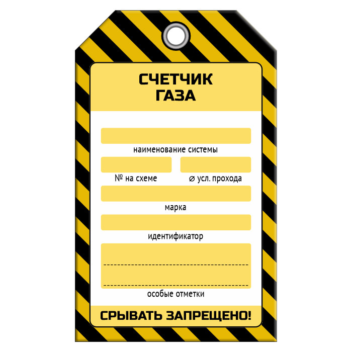 Бирка «СЧЕТЧИК ГАЗА» размером 70х115 мм имеет полноцветную односторонюю печать. Для дополнительной защиты от факторов окружающей среды возможно ламинирование поверхности