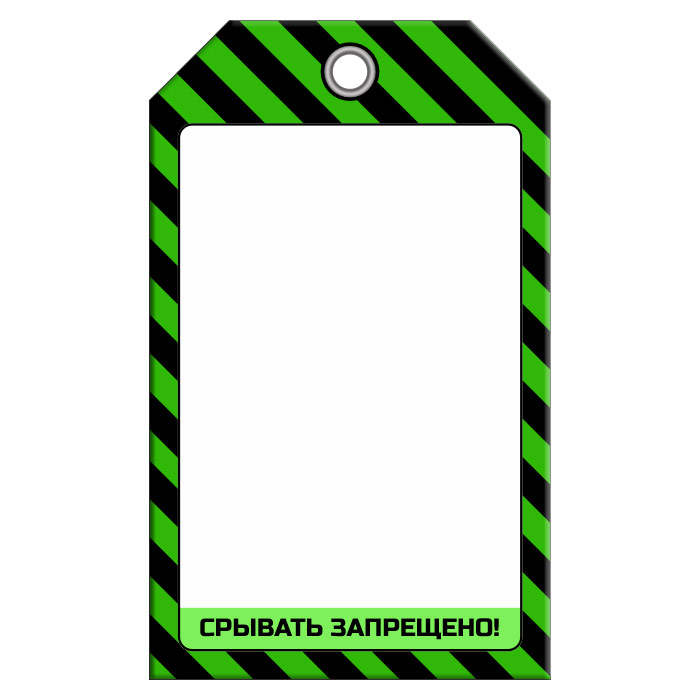 Бирка без информации размером 70х115 мм имеет полноцветную односторонюю печать. Цвет: зеленый. Для дополнительной защиты от факторов окружающей среды возможно ламинирование поверхности