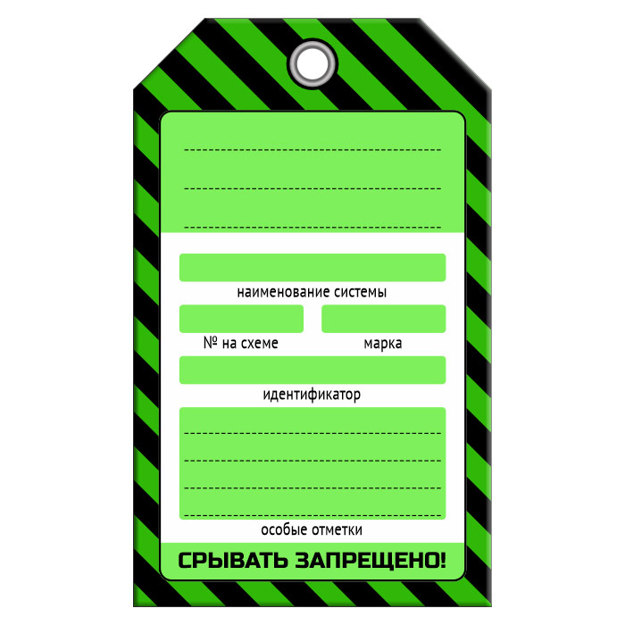 Бирка без наименования размером 70х115 мм имеет полноцветную односторонюю печать. Цвет: зеленый. Для дополнительной защиты от факторов окружающей среды возможно ламинирование поверхности