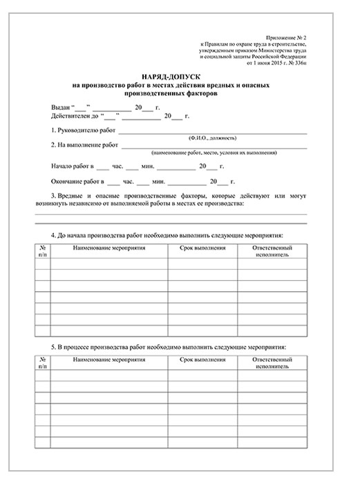 Бланк Наряд-допуск на производство работ в местах действия опасных или вредных факторов изготавливается на газетной бумаге плотностью 48 г/м2, односторонняя печать А4 формата книжного расположения. В упаковке 100 штук