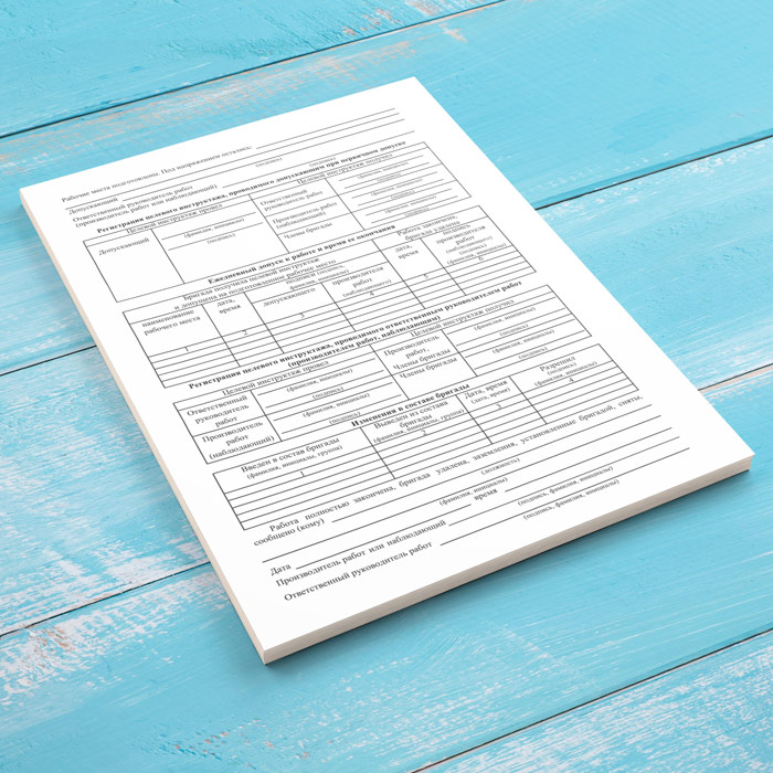 Наряд-допуск – это задание, оформленное на специальном бланке 1 и определяющее содержание, место работы, время ее начала и окончания, условия безопасного проведения, состав бригады и сотрудников, ответственных за безопасное выполнение работы