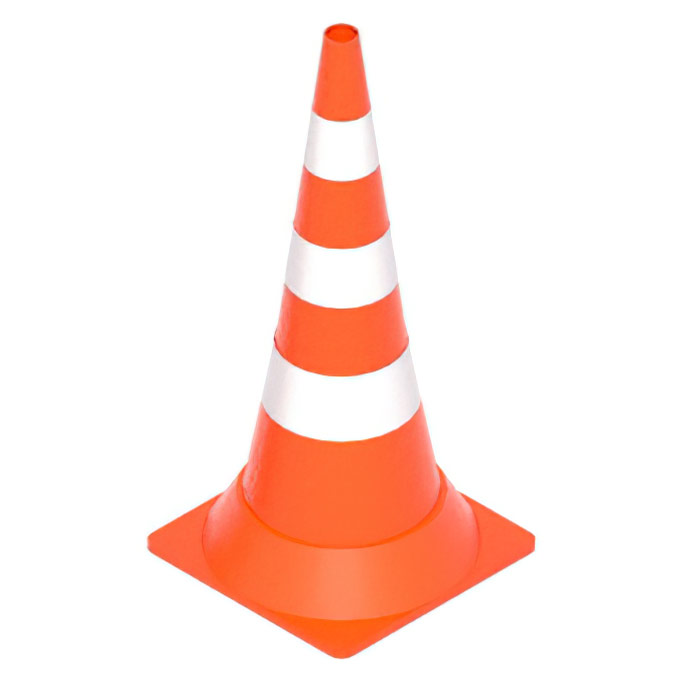Конус дорожный предназначен для создания мобильной дорожной разметки, парковки и других целей организации дорожного движения. Цельнолитое изделие (не из частей). Изготовлен из мягкого ПВХ, не трескается при наезде автомобиля. Покрывается 3 полосами световозвращающей контрастной пленки. Имеется утяжелитель в нижней части.