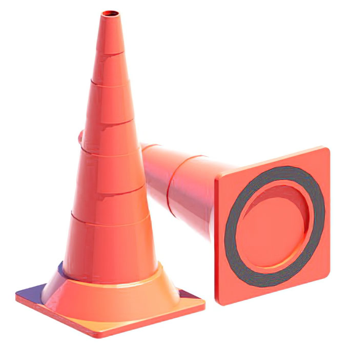 - Высокая эластичность: благодаря тому что конус изготовлен из мягкого ПВХ, сохраняет пластичность и восстанавливает свою форму после наезда автомобиля