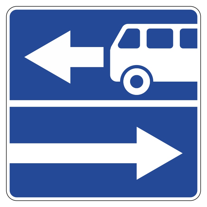 Знак обозначает выезд на дорогу с полосой для маршрутных транспортных средств (знак 5.11), движение которых осуществляется по специально выделенной полосе навстречу общему потоку движения транспортных средств. На перекрестке, перед которым установлен знак 5.13.1, запрещается поворот налево. Разворот не запрещается