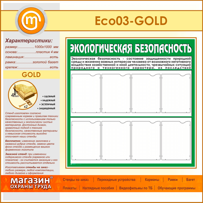 Стенд «Экологическая безопасность» с 8 карманами (ECO-03-GOLD)