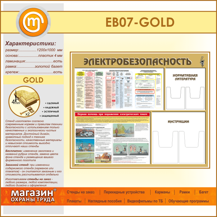 Стенд «Электробезопасность» с 4 объемными карманами (EB-07-GOLD)