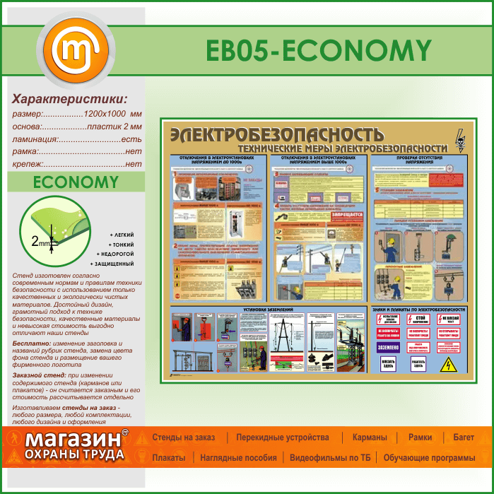 Стенд «Электробезопасность. Технические меры электробезопасности» (EB-05-ECONOMY)