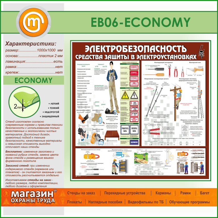 Стенд «Электробезопасность. Средства защиты в электроустановках» (EB-06-ECONOMY)