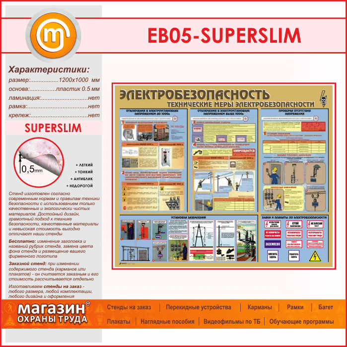 Стенд «Электробезопасность. Технические меры электробезопасности» (EB-05-SUPERSLIM)