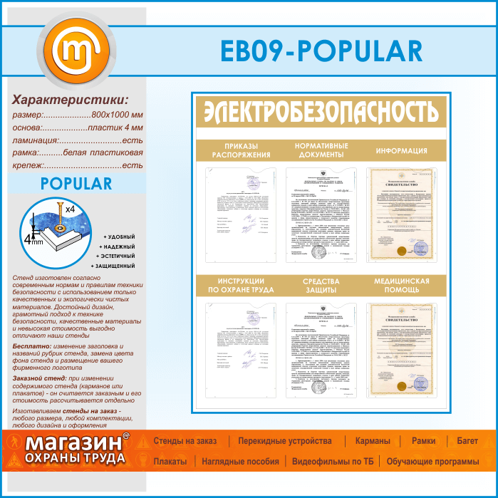 Стенд «Электробезопасность» с 6 карманами (EB-09-POPULAR)