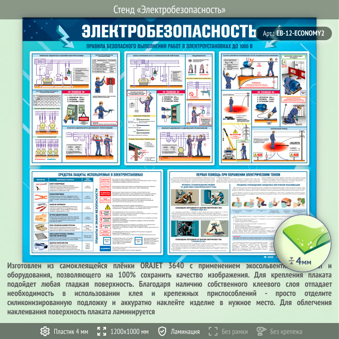 Стенд «Электробезопасность» (EB-12)это незаменимый инструмент для обеспечения безопасности на рабочем месте. Стенд поможет повысить уровень осведомленности и подготовленности сотрудников в области электробезопасности.