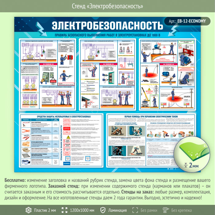 Стенд «Электробезопасность» (EB-12)это незаменимый инструмент для обеспечения безопасности на рабочем месте. Стенд поможет повысить уровень осведомленности и подготовленности сотрудников в области электробезопасности.