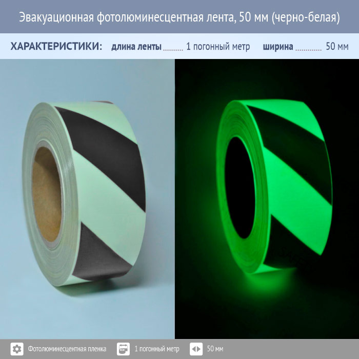 Эвакуационная фотолюминесцентная лента, 50 мм (черно-белая)