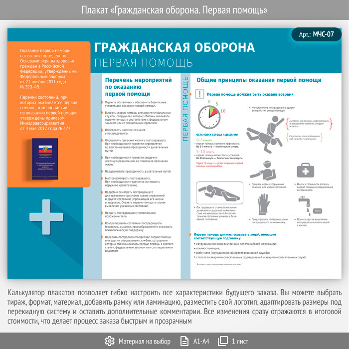 Плакат «Гражданская оборона. Первая помощь» (МЧС-07, 1 лист)