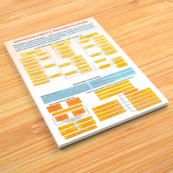 - Плакат «Инженерная защита и эвакуация населения» – классификация защитных сооружений ГО и способы эвакуации