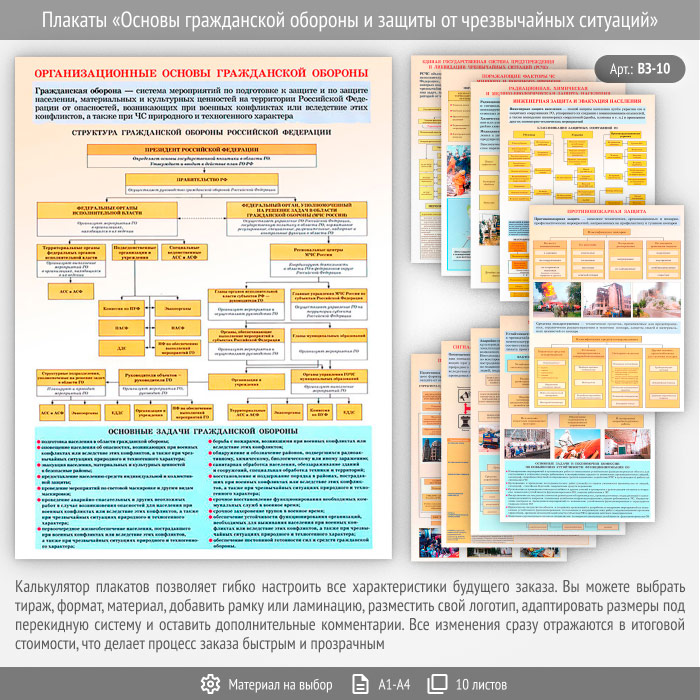 Плакаты «Основы гражданской обороны и защиты от чрезвычайных ситуаций» (ВЗ-10, 10 листов)