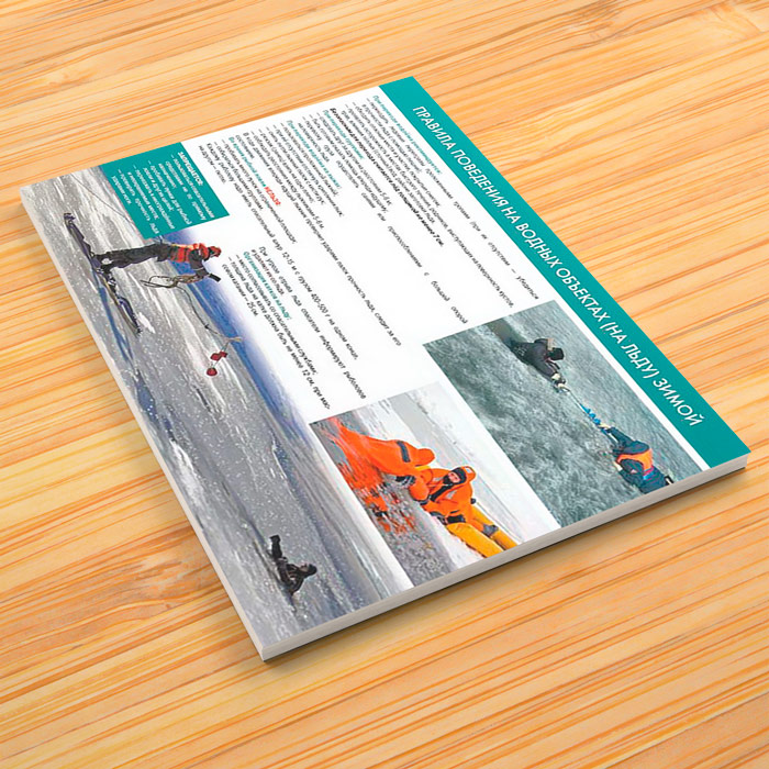 - Плакат «Правила поведения на водных объектах на льду зимой» – переход водоёмов и зимняя рыбная ловля
