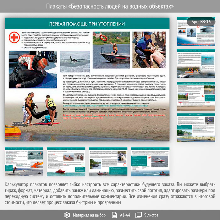 Плакаты «Безопасность людей на водных объектах» (ВЗ-16, 9 листов)