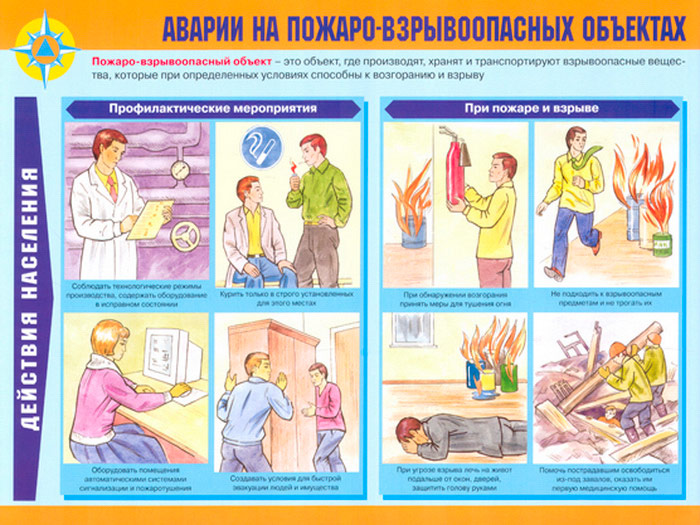 - Плакат «Аварии на пожаро-взрывоопасных объектах» – профилактические мероприятия, действия при пожаре и взрыве