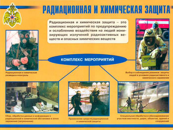 - Плакат «Радиационная и химическая защита» – комплекс мероприятий