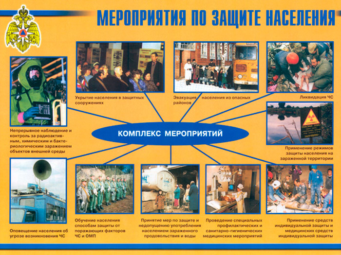 - Плакат «Мероприятия по защите населения» – комплекс мероприятий