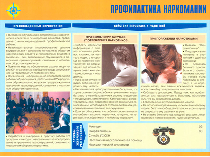 - Плакат «Профилактика наркомании» – организационные мероприятия, действия персонала и родителей