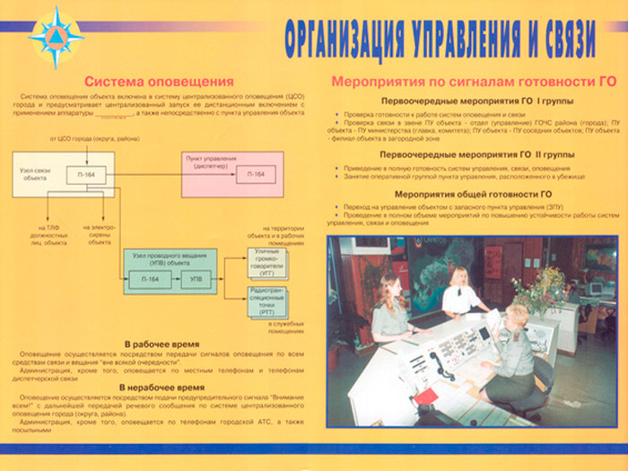 - Плакат «Организация управления и связи» – система оповещения, мероприятия по сигналам готовности ГО