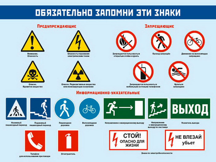 - Плакат «Обязательно запомни эти знаки» – основные знаки безопасности, которые должен знать каждый