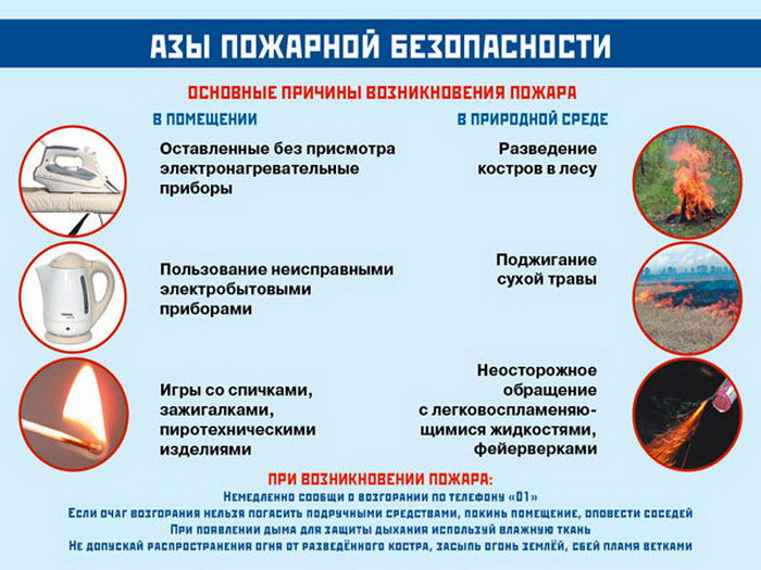 - Плакат «Азы пожарной безопасности» – основные причины пожаров и действия при возникновении пожаров