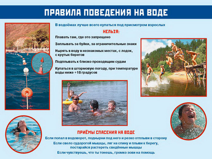 - Плакат «Правила поведения на воде» – безопасность на воде и приёмы спасения