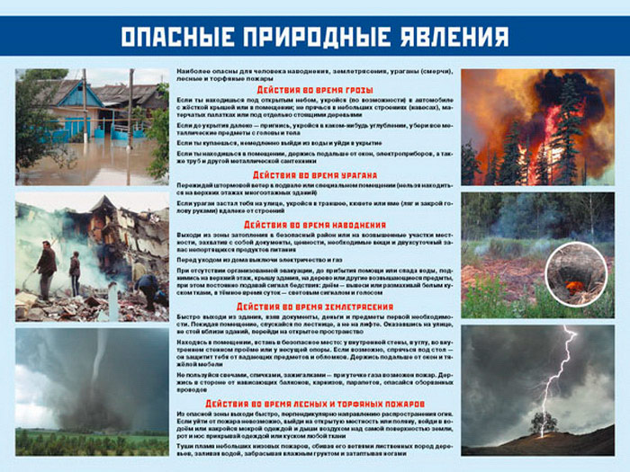 - Плакат «Опасные природные явления» – действия при возникновении природных катаклизмов