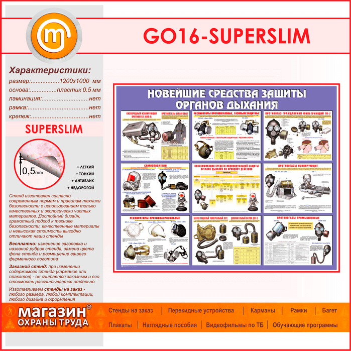 Стенд «Новейшие средства защиты органов дыхания» (GO-16-SUPERSLIM)