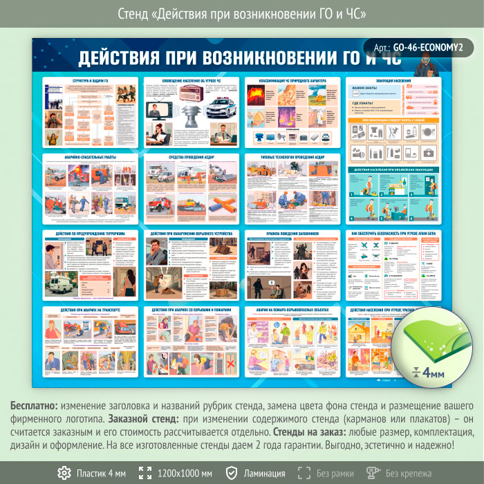 Стенд «Действия при возникновении ГО и ЧС» (GO-46-ECONOMY2)
